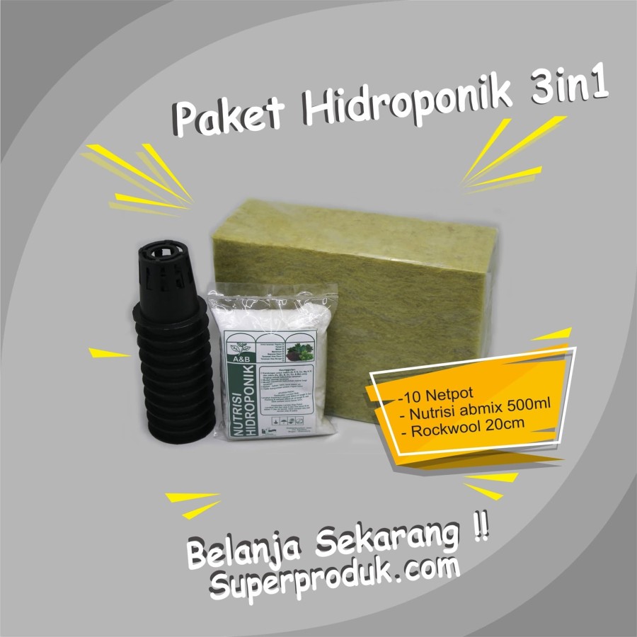 Paket Hidroponik 3in1 netpot/Nutrisi hidroponik/rockwool
