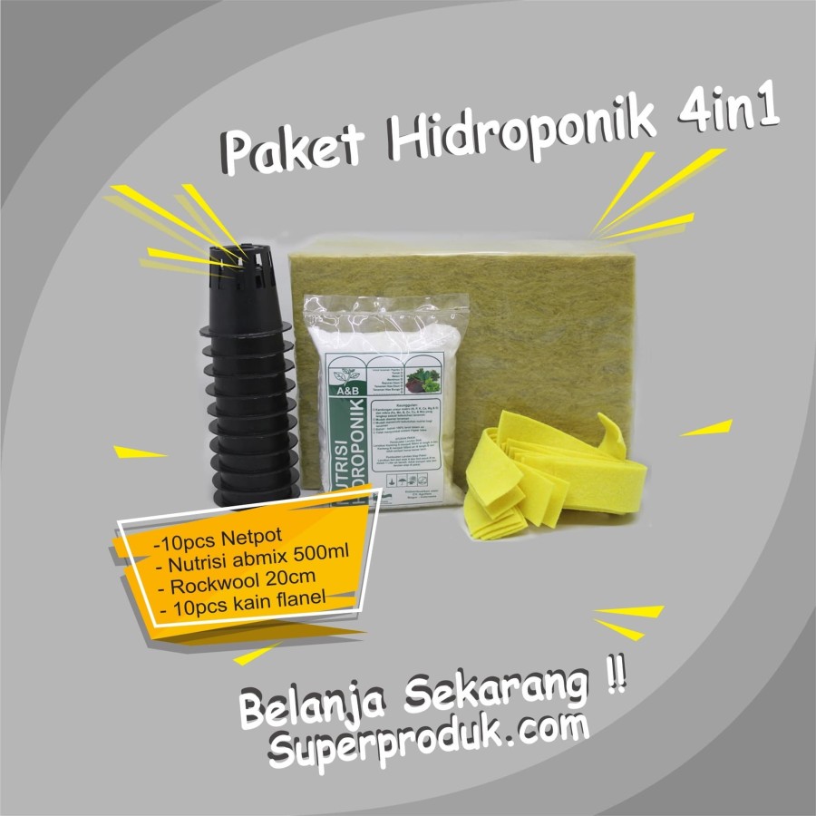 Paket Hidroponik 4in1 rockwool/netpot/nutrisi hidroponik/kain flanel